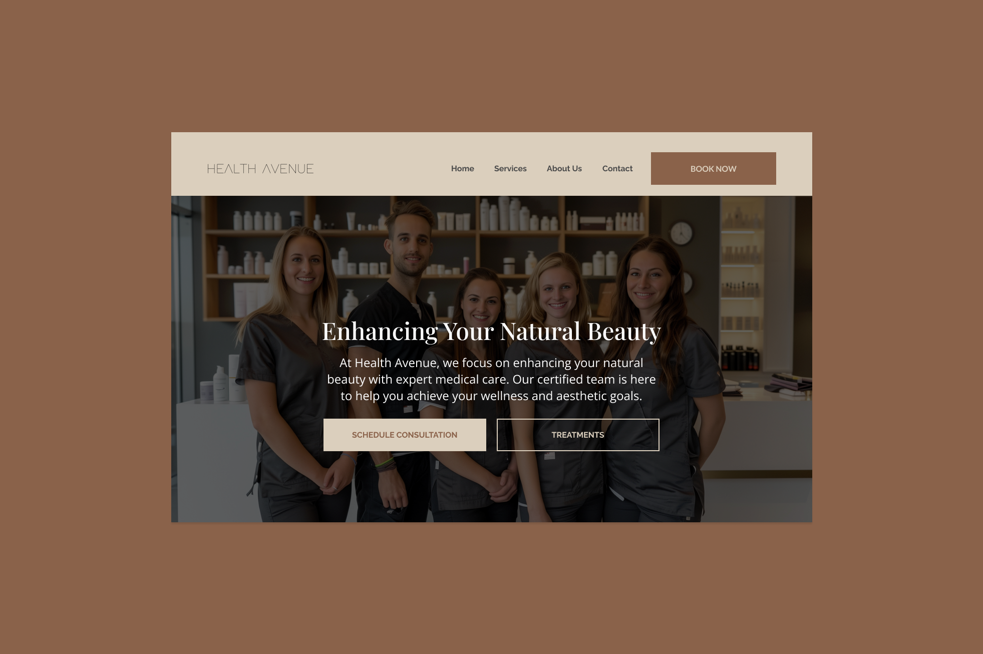 I redesigned the landing page for an aesthetic clinic, The Health Avenue, focusing on a clean, modern look and feel.